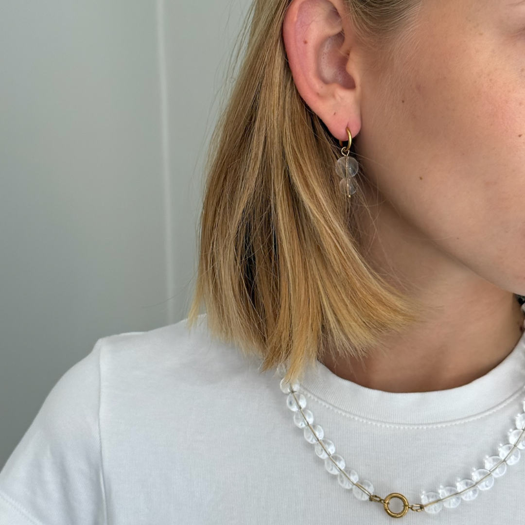 Af hensyn til øreringenes naturperler anbefaler vi dog at undgå mængden af vand, som halskæden udsættes for.