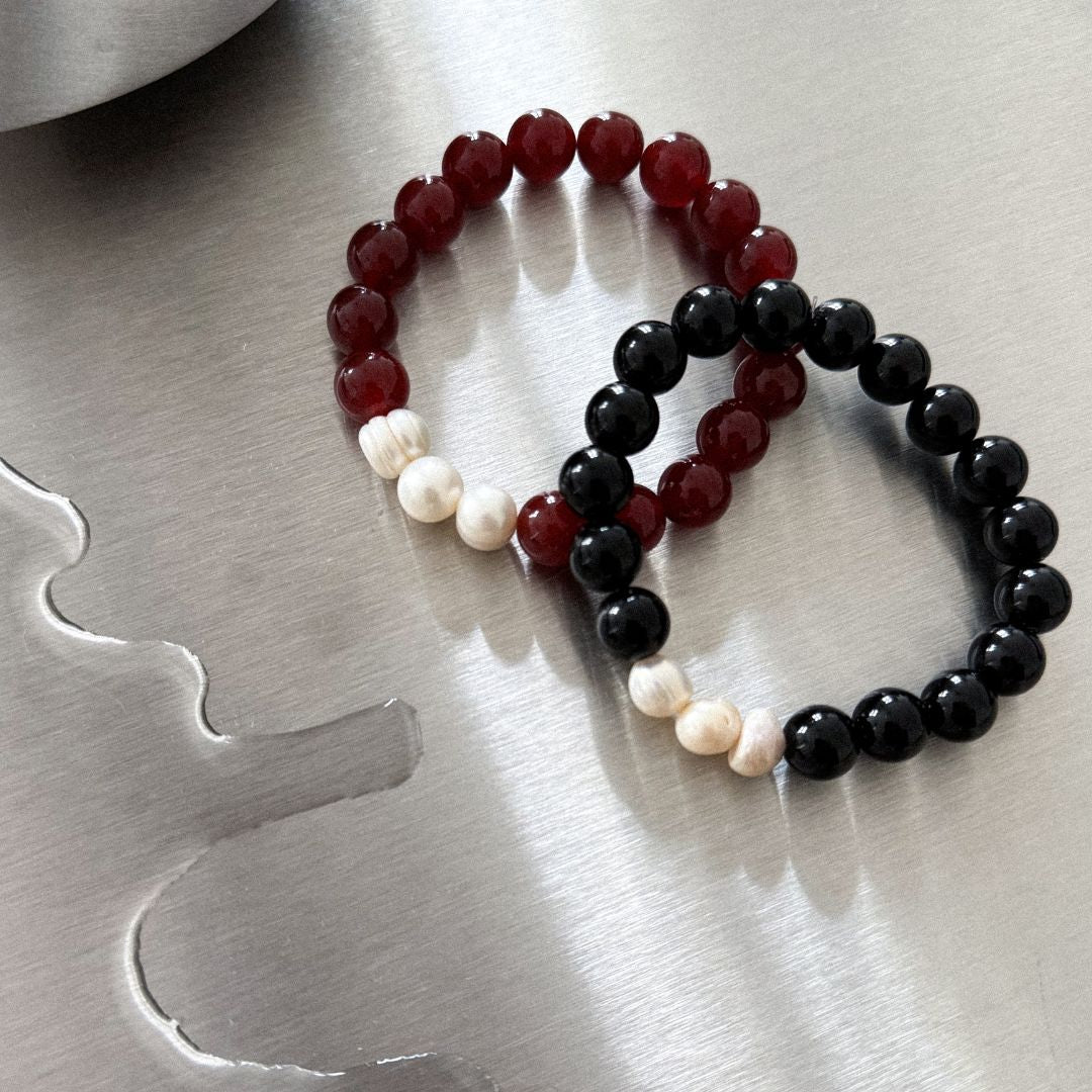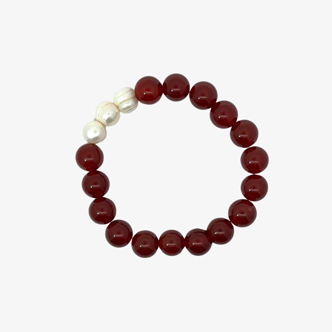 Rustfrit stål forgyldt med 18 karat guld. Armbåndets metal er nikkelfri og blyfri, jvf. dansk lovgivning og lavet af vandfast materiale, og kan tåle vand, sved og parfume. Af hensyn til armbåndets perler anbefaler vi dog at undgå mængden af vand, som halskæden udsættes for.