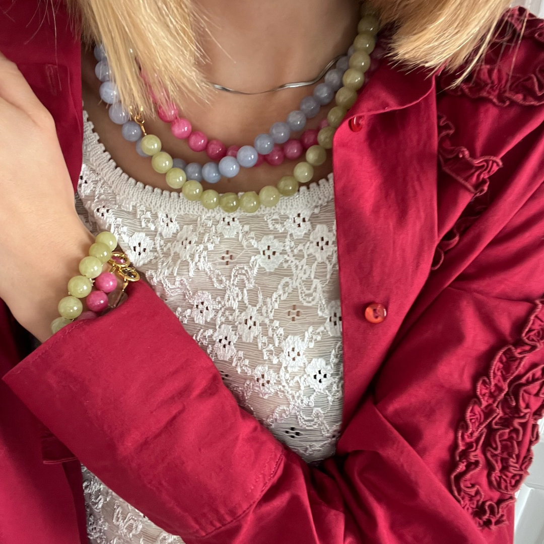 Af hensyn til halskædens naturperler anbefaler vi dog at undgå mængden af vand, som halskæden udsættes for.