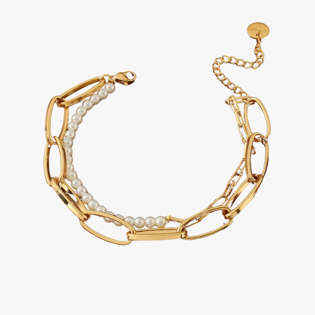 Rustfrit stål forgyldt med 18 karat guld. Armbåndets metal er nikkelfri og blyfri, jvf. dansk lovgivning og lavet af vandfast materiale, og kan tåle vand, sved og parfume.
