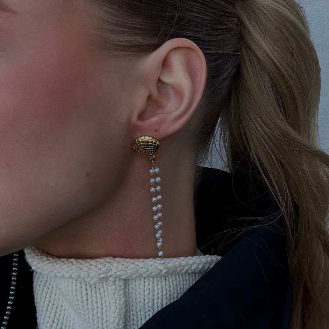 Øreringene sælges som ét sæt. De måler 1.6 x 5.4 cm.