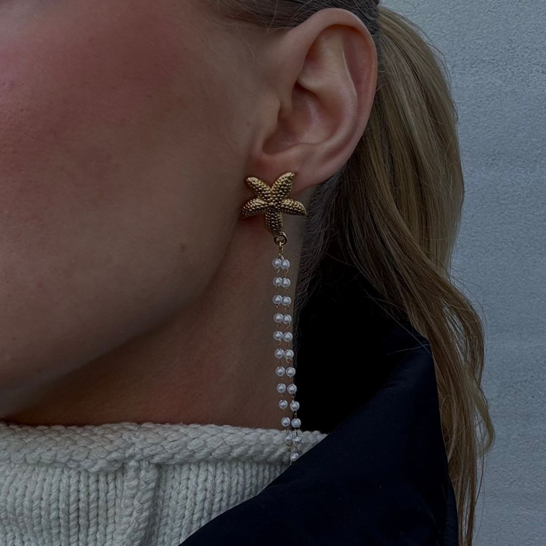 Øreringene sælges som ét sæt. De måler 1.9 x 6.4 cm.